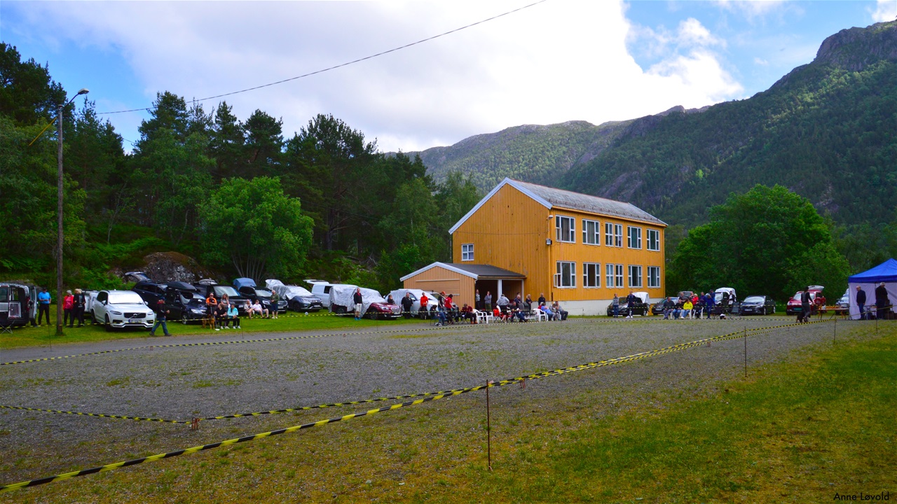 Rett etter neste sving: Avkjøring til høyre, en grusbakke oppover og du er framme.